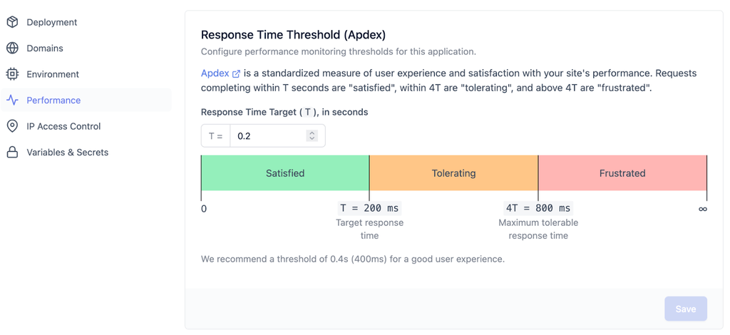 Plus, you can now customize the apdex threshold time (T), allowing you to adjust your performance targets to match your users’ needs.